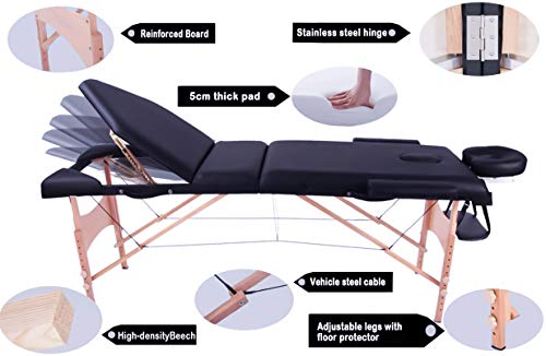 【PREMIUM COMFORT】: Table features deluxe cushioning, providing the ultimate comfort for your clients. The table top and armrest wings both are composed of a plush, 5cm thick layer of high-density foam, and the face pillow with a removable cover.